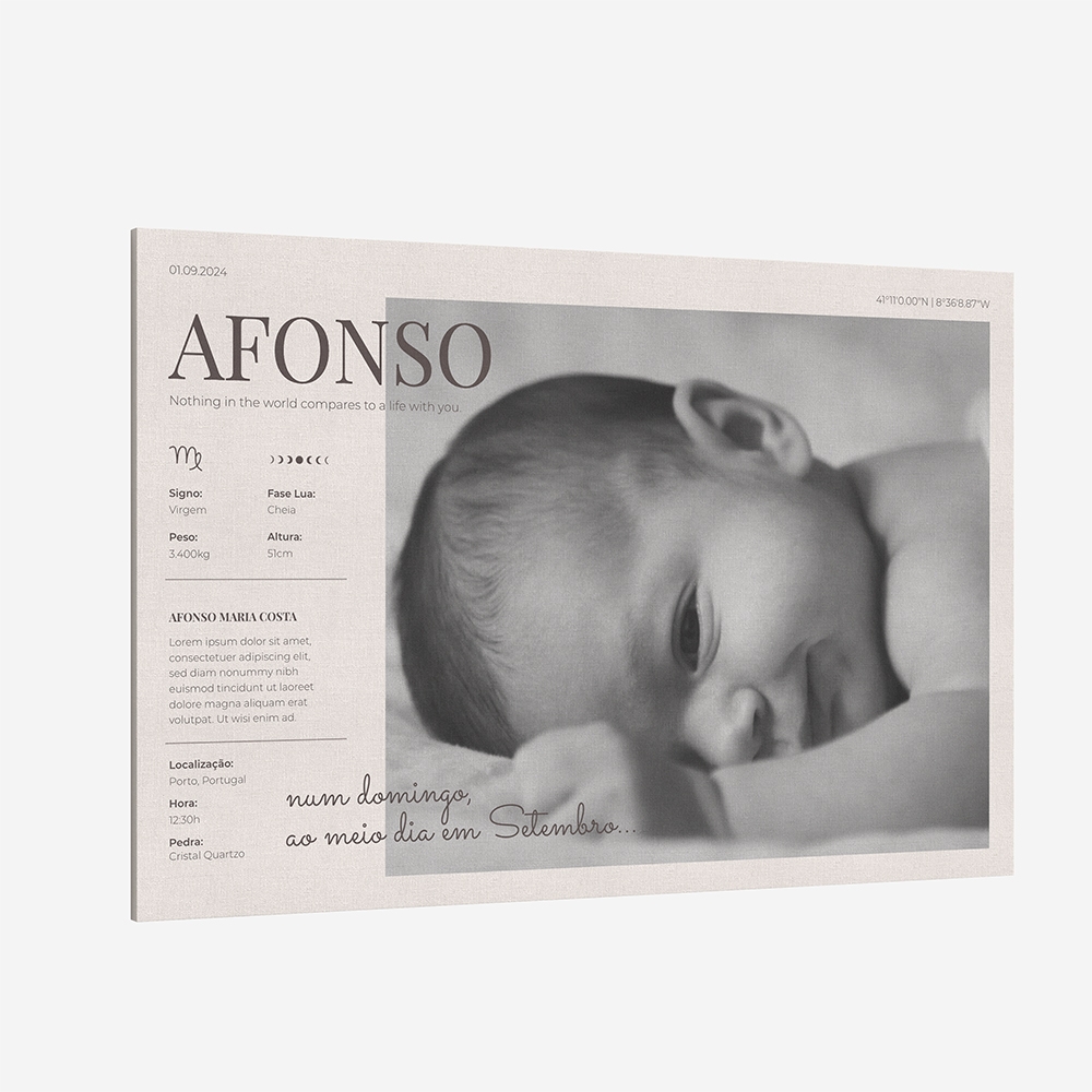 Impressa em tela de algodão com alta definição, garantindo uma nitidez impecável. Disponível com bastidores de 2 cm de profundidade, envoltos numa estrutura de madeira de alta qualidade para maior durabilidade.